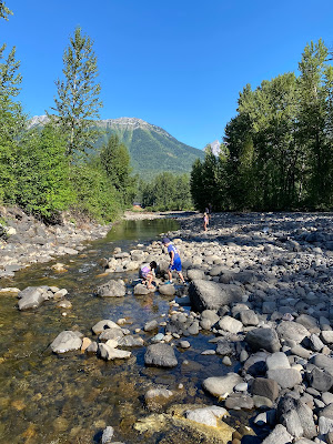 After another year with minimal travel, we made our way out west to visit both sides of the family, and it was the highlight of the summer for sure! We flew to Calgary (no delays/hiccups) and after a long day of travel rolled into Fernie where we were greeted by cousin Anouk on the front lawn of my sister's family's house. After three years of no visits, it was great to see everyone, and meet their youngest daughter Simone. The highlight of the Fernie leg of the trip may have been our incredible hike to Bisaro cave - this was not a hike for the faint of heart! There were ladders and bridges and a few switchbacks that required steady eyes and feet, but with a good adult to kid ratio and some priming (safety, listening to the adults in charge, etc.) we felt comfortable that the kids were good to go. The views on the way up were so so beautiful, and the cave and cave explore at the end were memorable to say the least! The big kids and Steve explored into the cave with Sarah and her friend Duncan, and experienced the complete darkness of one of BCs biggest known caves (but with headlamps). We also went for a river float, Steve and Hendrik went whitewater rafting (which sounded incredible - there was cliff jumping and a sandwich that has not yet been replicated), Sarah and I went mountain biking and trail running, we visited Island Lake Lodge, ate many fabulous meals outside, and I dreamed of future summer and winter visits. I did make a few notes on all of the wonderful things we did there, so I'll post a photo - this is more for me than it is for you (I think - I'm not sure you'll be able to decipher my scrawl!).